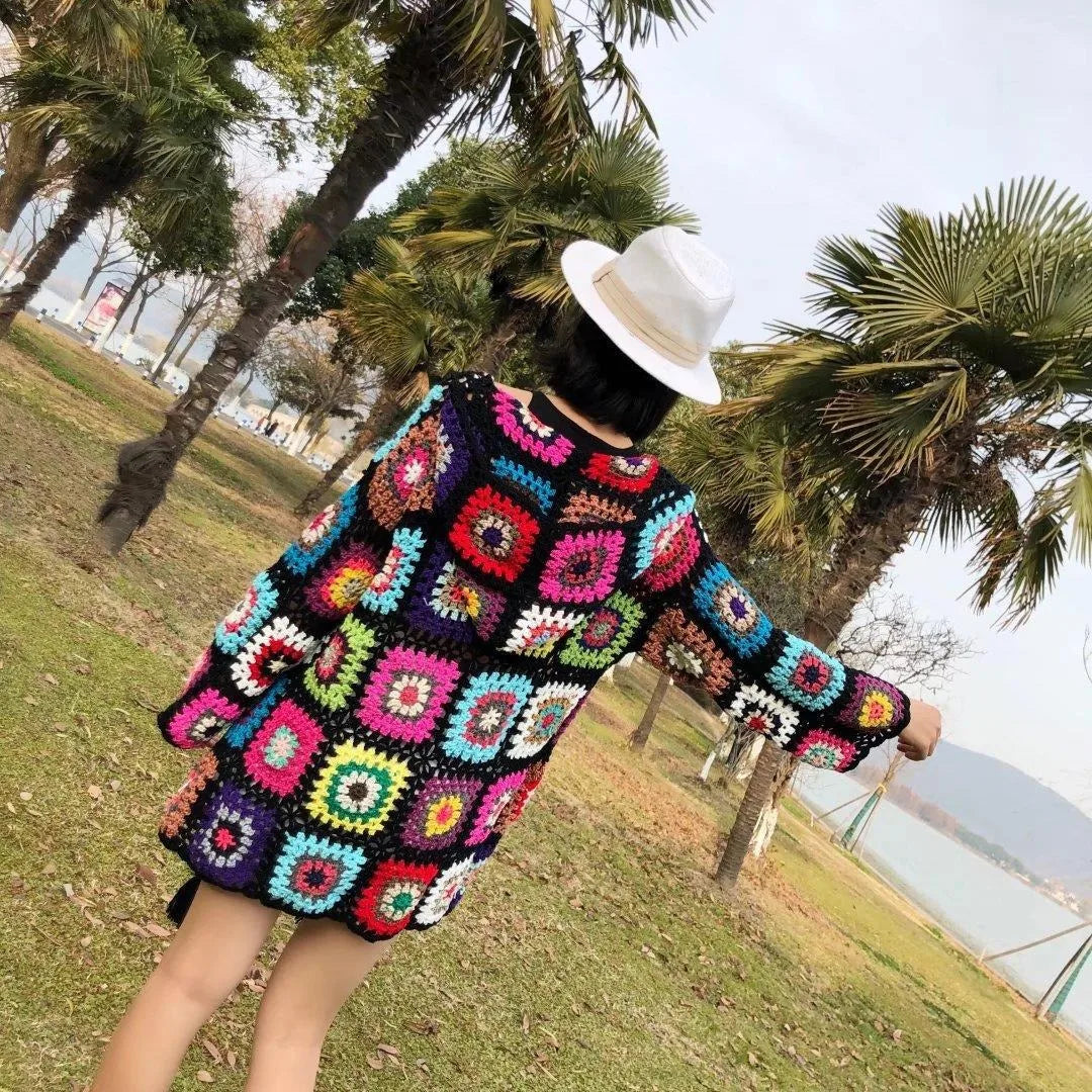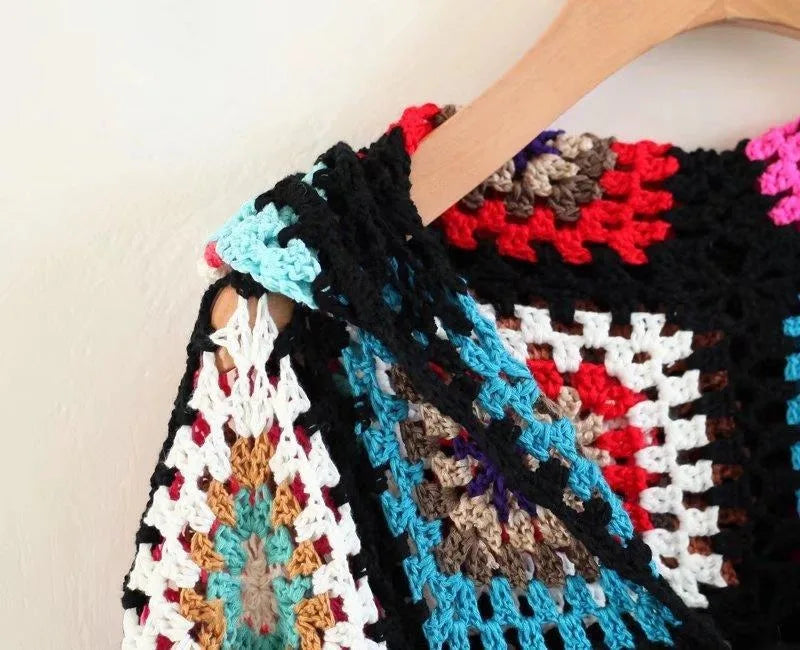 Der Hippie Häkelmantel bringt handgefertigte Raffinesse und den Zauber des Boho-Lebens in Einklang. Jedes Stück überzeugt durch kunstvolle Häkeloptik, warme Erdtöne und verspielte Farbkontraste. Ein echtes Einzelstück, das mit seinem alternativen Charakter und leichten Fransen die Brücke zwischen Vintage-Flair und moderner Selbstentfaltung schlägt. Perfekt für kreative Seelen, die nicht nur Bekleidung suchen, sondern Ausdruck. Dieser Mantel kleidet nicht – er begleitet und erzählt Geschichten von Freiheit und Authentizität.